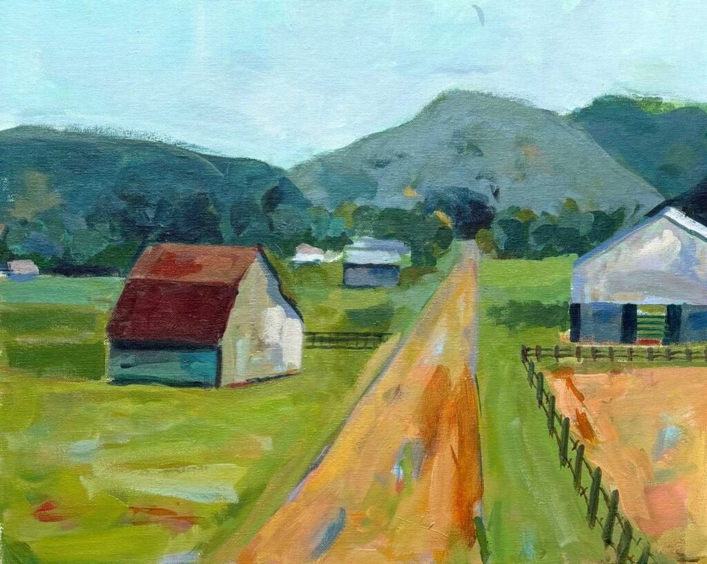 When I paint, I try to remain aware of nature’s tension, seeking color patches that convey the surprising and visual values of the outdoors. I like the interesting juxtaposition of man-made structures against a wild landscape.